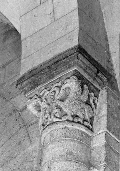 POP | Plateforme ouverte du patrimoineIntérieur, bas-côté sud, cinquième pilier : chapiteau orné de deux griffons, côté nord-ouest