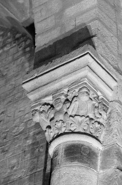 POP | Plateforme ouverte du patrimoineIntérieur, bas-côté nord, neuvième pilier : chapiteau orné d'un personnage encadré de deux animaux fantastiques, côté sud-est