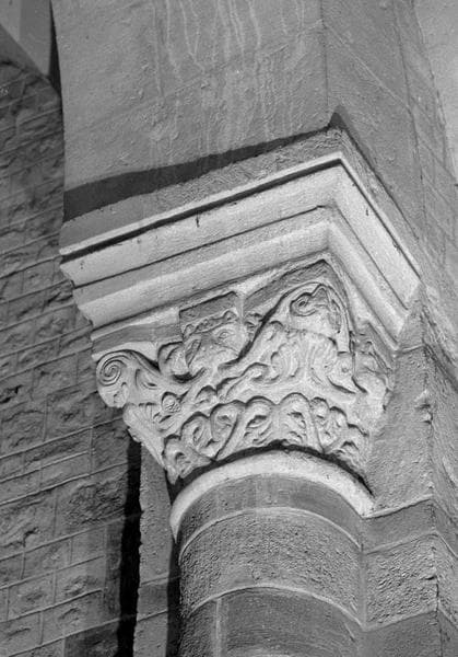 POP | Plateforme ouverte du patrimoineIntérieur, bas-côté nord, huitième pilier : chapiteau orné de motifs végétaux et d'une tête d'animal, côté sud-est