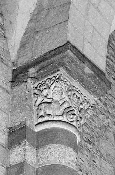 POP | Plateforme ouverte du patrimoineIntérieur, bas-côté nord, quatrième pilier : chapiteau orné de figures fantastiques, côté sud-ouest