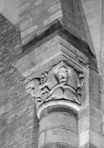 POP | Plateforme ouverte du patrimoineIntérieur, bas-côté nord, premier pilier : chapiteau orné d'animaux, côté sud-est