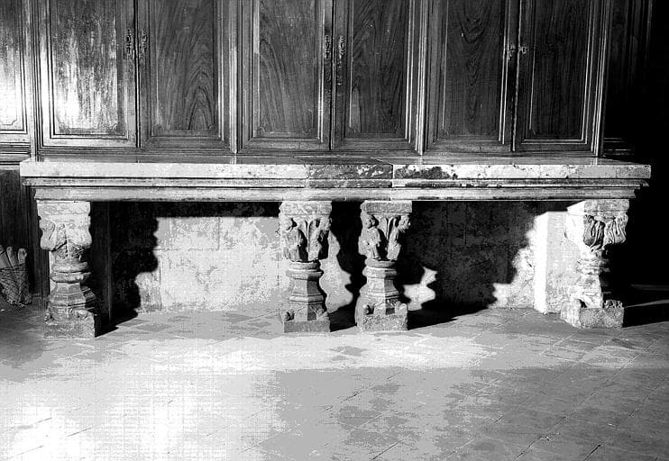 POP | Plateforme ouverte du patrimoineGrande table en pierre formée de deux dalles funéraires posées sur six chapiteaux provenant du cloître