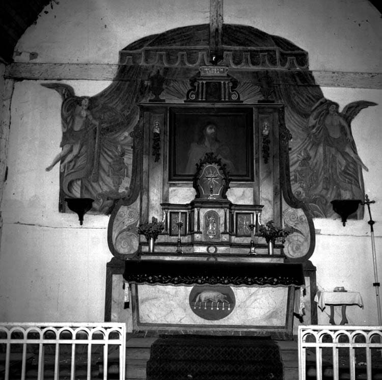 Maître-retable et tabernacle en bois doré, et décor à la fresque sur le mur