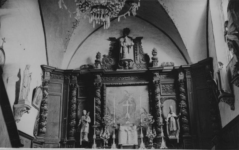 POP | Plateforme ouverte du patrimoineautel, retable, tableau : remise du rosaire à saint Dominique et sainte Catherine (la), statues (3) : Dieu le père, saint Laurent, saint Pierre (chapelle sud), vue partielle