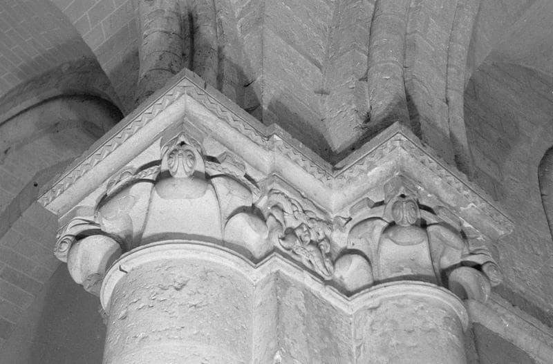 Intérieur, déambulatoire, côté nord : chapiteaux à feuilles d'acanthe