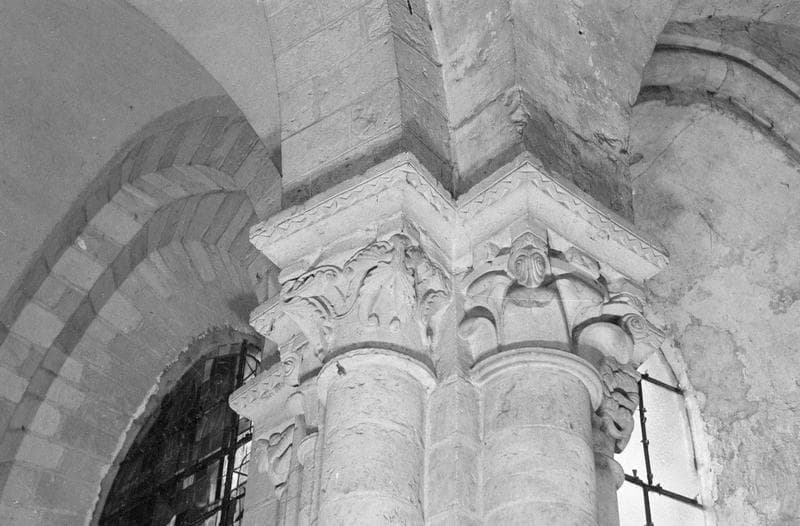 Intérieur, déambulatoire, côté sud : chapiteaux à feuilles d'acanthe, côté nord-ouest