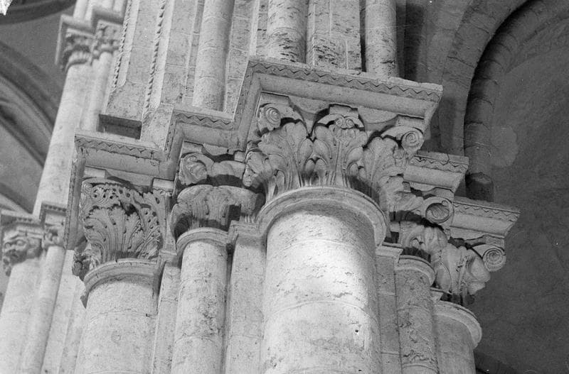 Intérieur, transept sud, pilier est : chapiteaux à feuilles d'acanthe, côté ouest