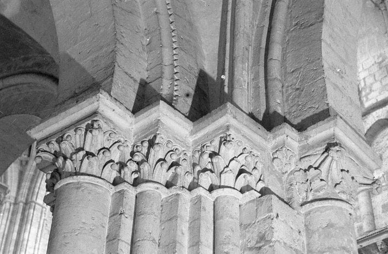 Intérieur, nef, quatrième pilier nord : chapiteaux à feuilles d'acanthe, côté nord-ouest