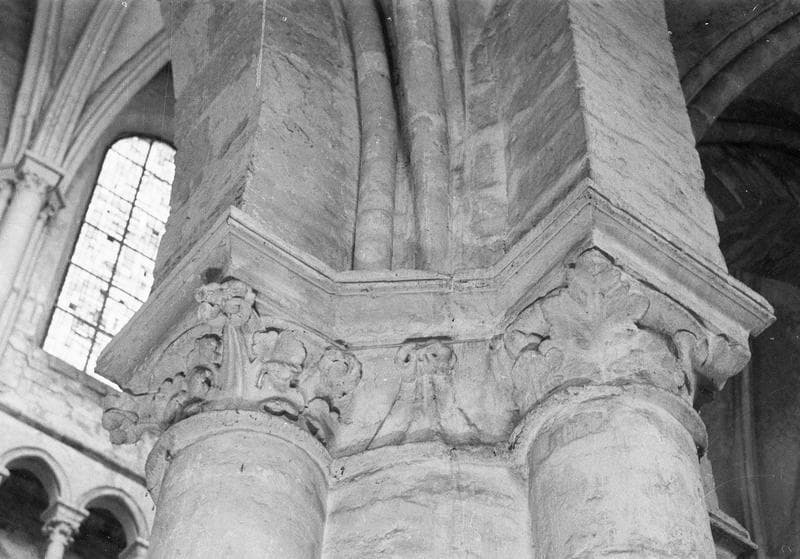 Intérieur, nef, troisième pilier sud : chapiteaux à feuilles d'acanthe, sud-ouest