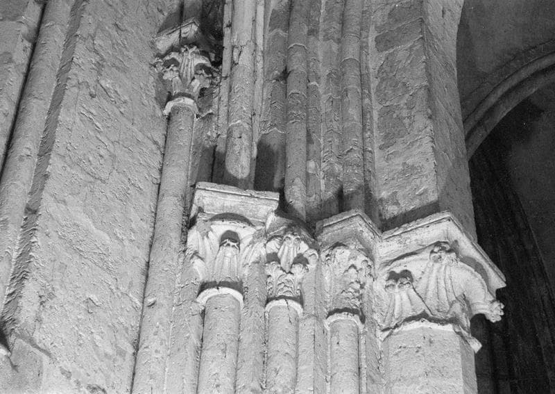 POP | Plateforme ouverte du patrimoineIntérieur, bas-côté nord, premier pilier : chapiteaux ornés de feuilles d'acanthe, côté sud-ouest