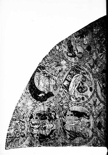 POP | Plateforme ouverte du patrimoineChape de saint Louis d'Anjou, broderies de soies de couleurs sur toile écrue (partie gauche)