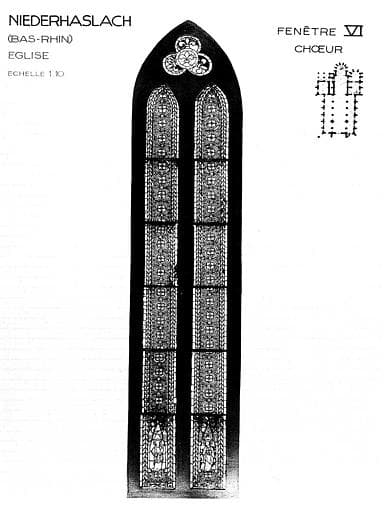 Saint Pierre et saint Paul, grisaille, baie VI, panneau de vitrail du choeur