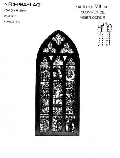 Oeuvres de Miséricorde, baie VII, panneau de vitrail de la nef