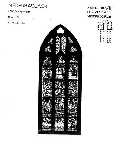 Oeuvres de Miséricorde, baie VIII, panneau de vitrail de la nef