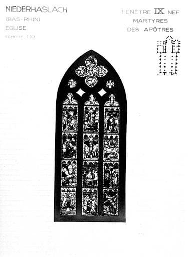 Martyres des Apôtres, baie IX, panneau de vitrail de la nef