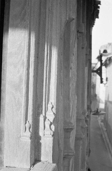 Façade sur rue, fenêtre du deuxième étage, détail de la base du piédroit droit