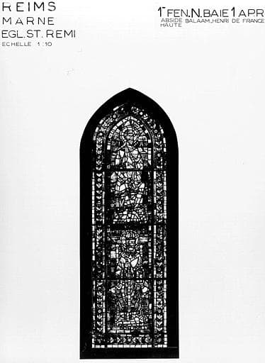 Balaam et henri de France, 1ère fenêtre nord, baie 1, panneau de vitrail de l'aside haute
