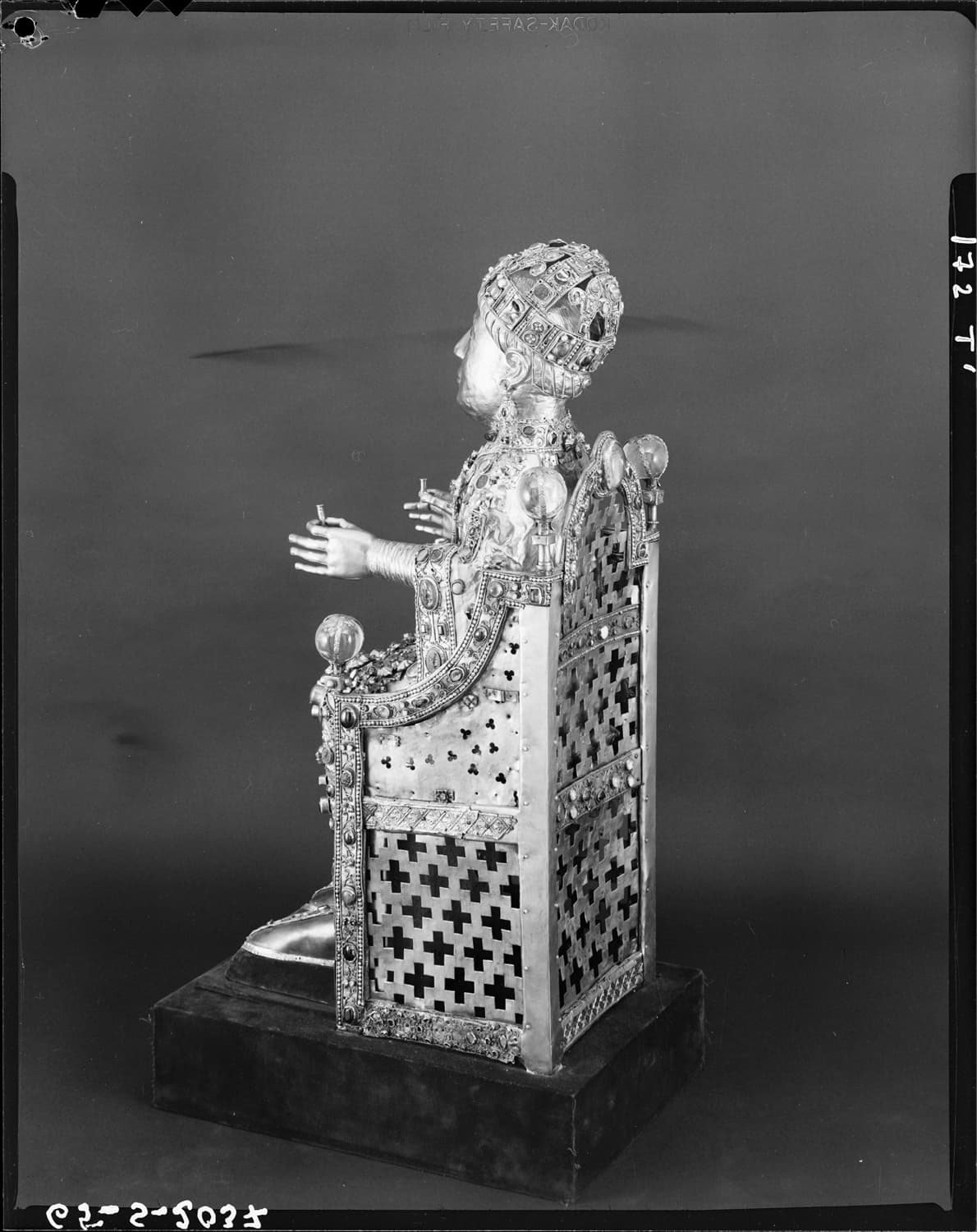 POP | Plateforme ouverte du patrimoineMajesté de sainte Foy, âme de bois en argent, or repoussé et filigranes, ensemble vu de trois-quarts dos gauche