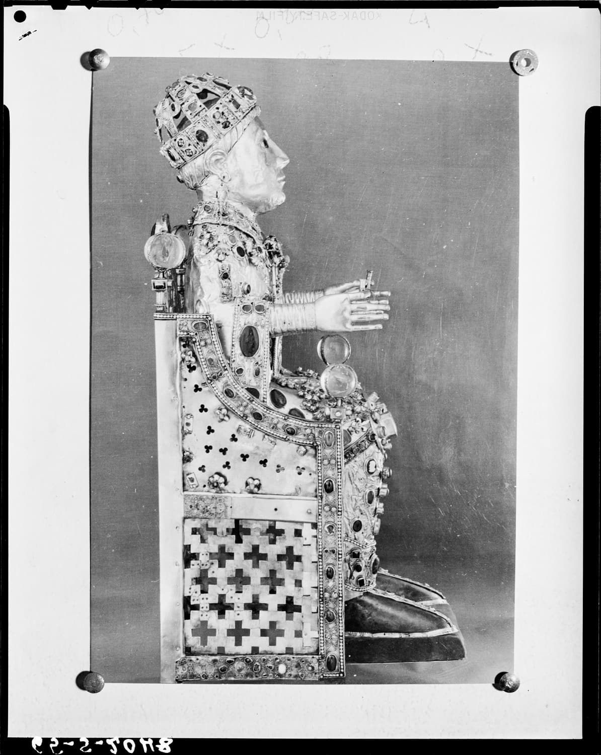 POP | Plateforme ouverte du patrimoineMajesté de sainte Foy, âme de bois en argent, or repoussé et filigranes, ensemble profil droit