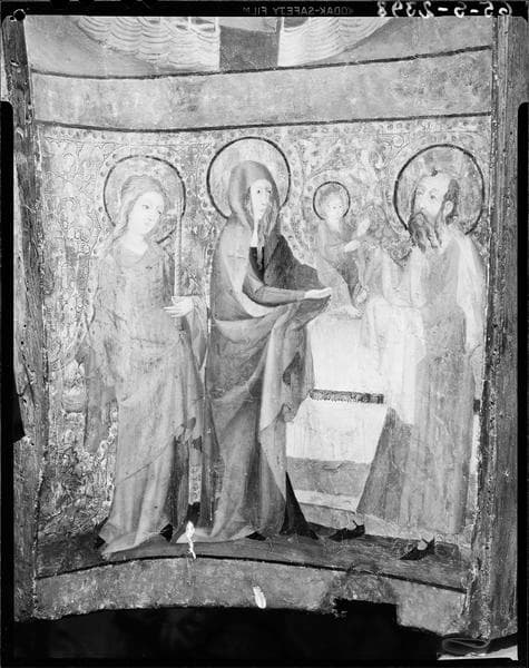 Statue ouvrante : Vierge à l'Enfant dite Notre-Dame du Mur, panneau gauche intérieur, registre inférieur représentant la Présentation au Temple