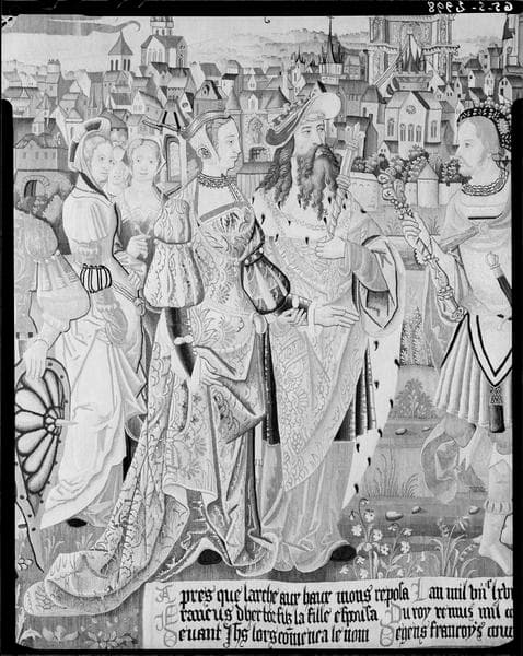 Tenture des Anciens rois des Gaules, cinquième pièce murale : Francus et Remus, vingt-troisième et vingt-quatrième rois des Gaules, détail