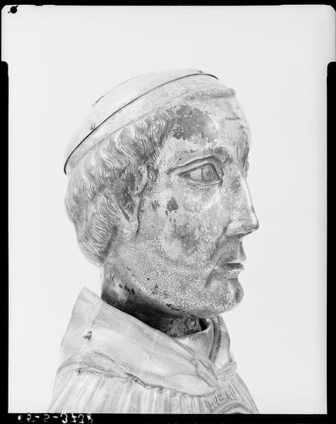 POP | Plateforme ouverte du patrimoineBuste-reliquaire : saint Théau, détail de la tête de trois quarts droit