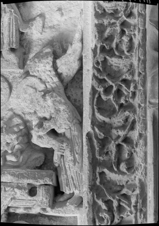 Cloître : pilier d'angle nord-ouest, face nord, panneau représentant la Résurrection, registre haut, détail