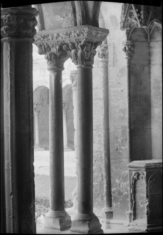 POP | Plateforme ouverte du patrimoineCloître : galerie sud, chapiteau n°91 (barons pendus sauvés miraculeusement) et n°90 (motif végétal), face ouest