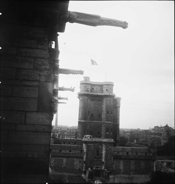 Donjon et châtelet vus de la Sainte-Chapelle ; gargouilles