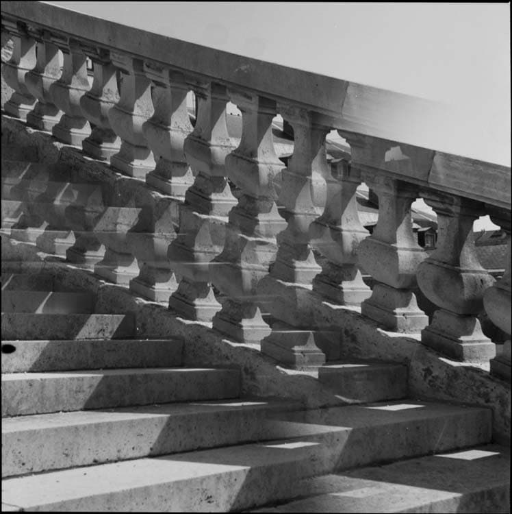 Petit parc : orangerie, escalier des cents marches, détail de la balustrade