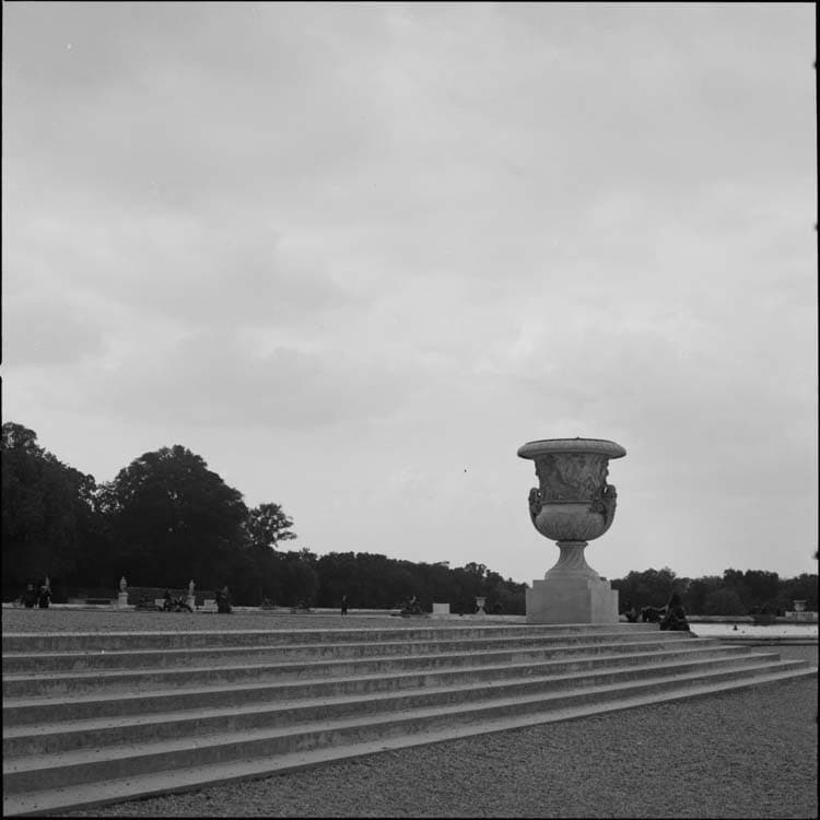 Jardins, parterre du Nord : petit escalier et vasque