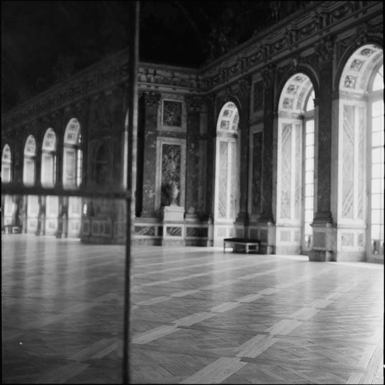 Château : galerie des Glaces, décor se miroitant dans les Glaces