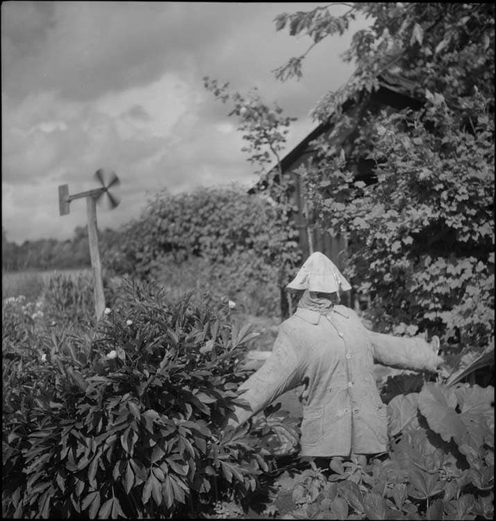 POP | Plateforme ouverte du patrimoineÉpouvantail au chapeau cloche trônant dans un potager
