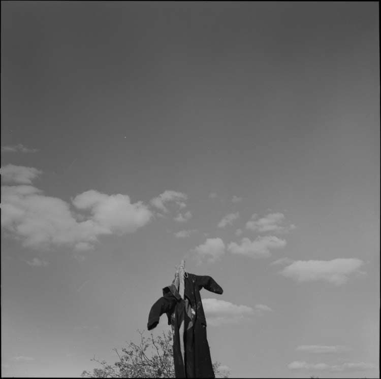 Épouvantail au manteau maculé de taches