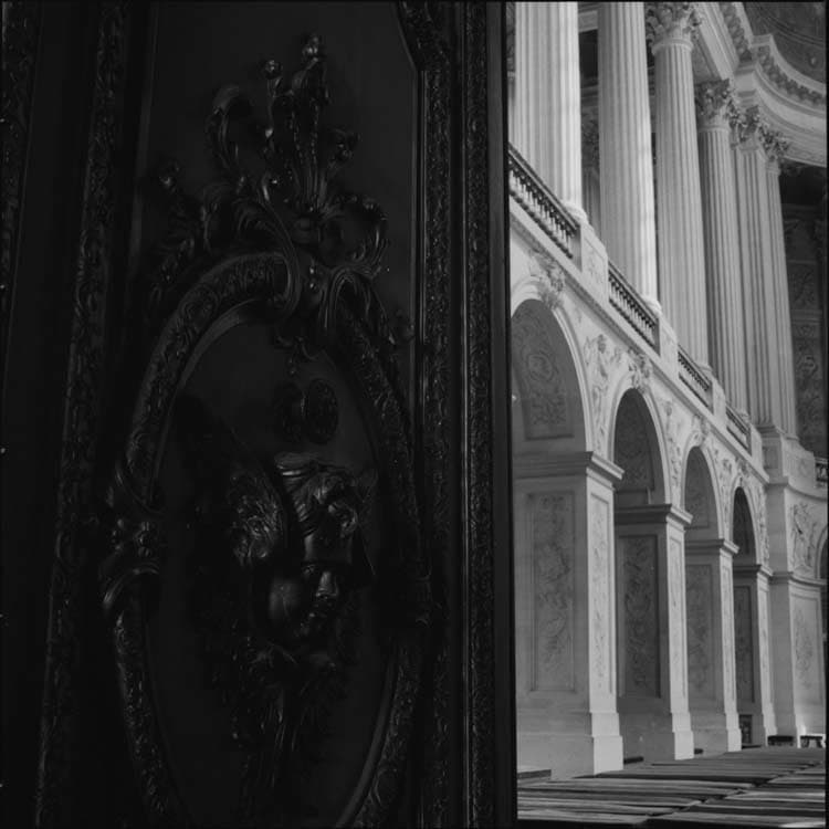 Chapelle royale : porte d’entrée, détail d’un battant sculpté