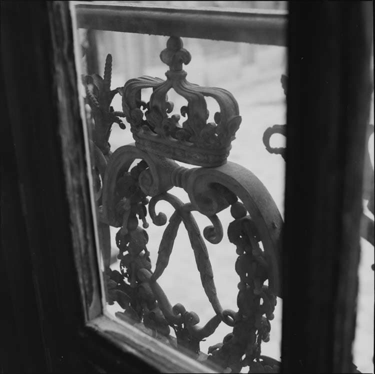 Château : appartements du Roi, salon de l'Oeil-de-boeuf, détail d’une grille de fenêtre