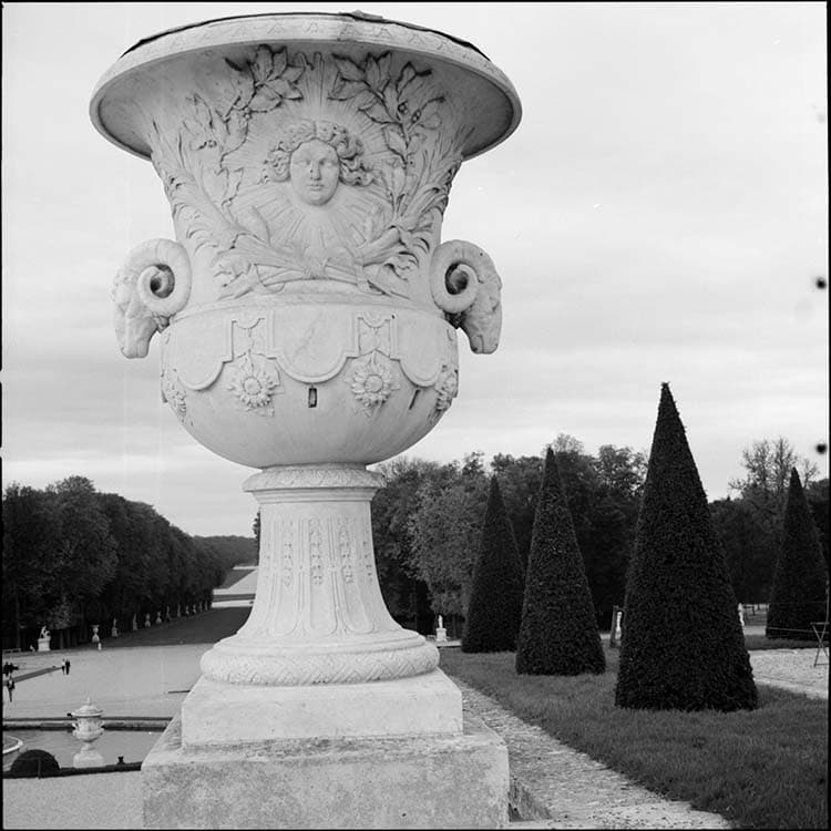 Jardins, parterre d’eau : vase à tête de bouc