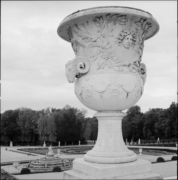 Jardins, parterre d’eau : vase à tête de bouc