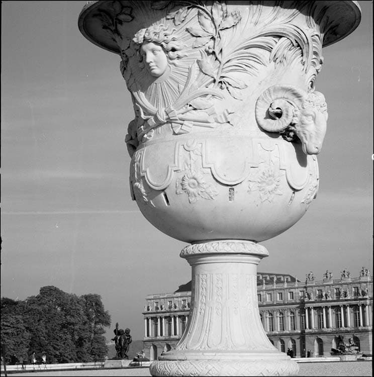Jardins, parterre d’eau : vase à tête de bouc