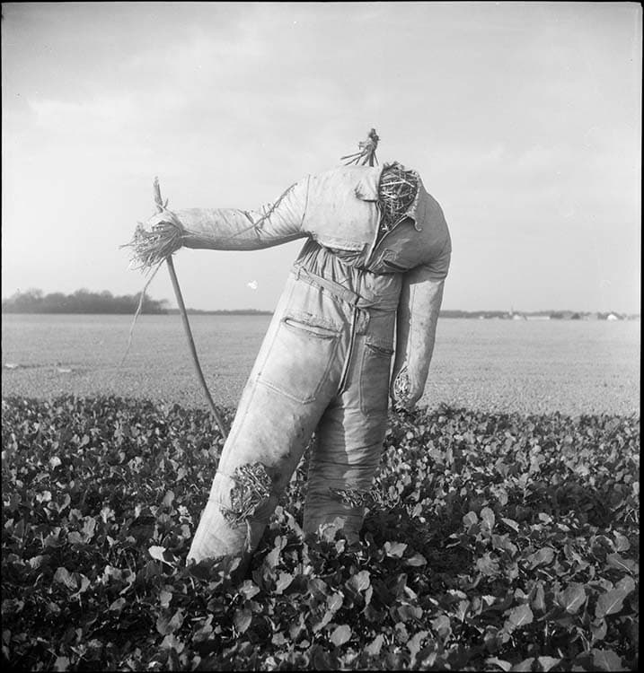 POP | Plateforme ouverte du patrimoineÉpouvantail en bleu de travail tenant un bâton