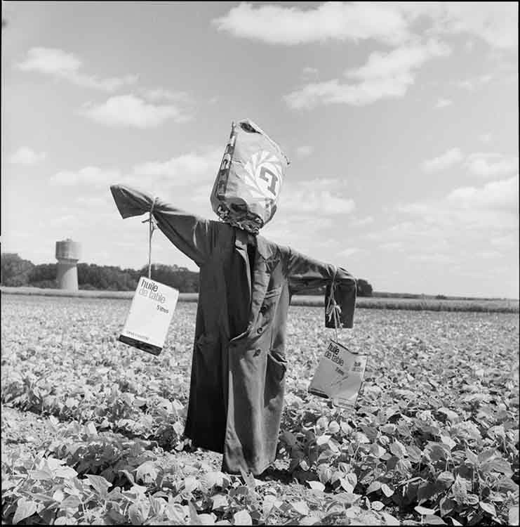 Épouvantail aux bidons d’huile de table