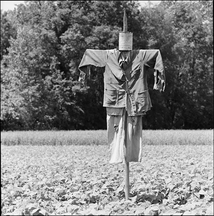 POP | Plateforme ouverte du patrimoineÉpouvantail au pot de peinture accroché à un pieu
