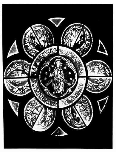 Médaillons du réseau, baie K, panneau de vitrail du choeur (photomontage)