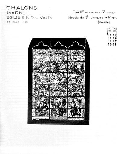 Miracles de saint Jacques le Majeur, baie 2 sud, panneau de vitrail de la basse nef (photomontage)