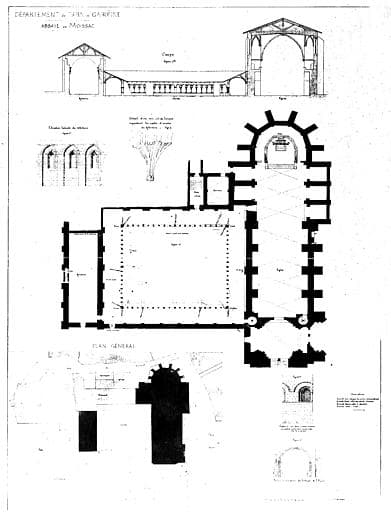 Plans et coupe sur la travée est du cloître
