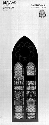 POP | Plateforme ouverte du patrimoineSaint Matthieu et saint Luc, baie A13, panneau de vitrail (photomontage)