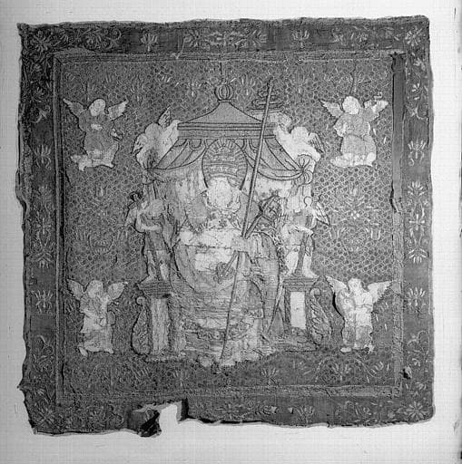 POP | Plateforme ouverte du patrimoineBannière en velours cramoisi à personnages brodés en soies de couleur : Saint Pierre pontifiant