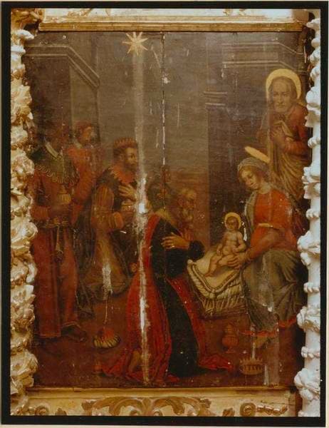 panneau peint : l'adoration des mages, vue générale