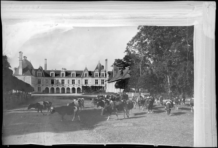 POP | Plateforme ouverte du patrimoineEnsemble nord sur cour d'honneur, troupeau de vaches au premier plan