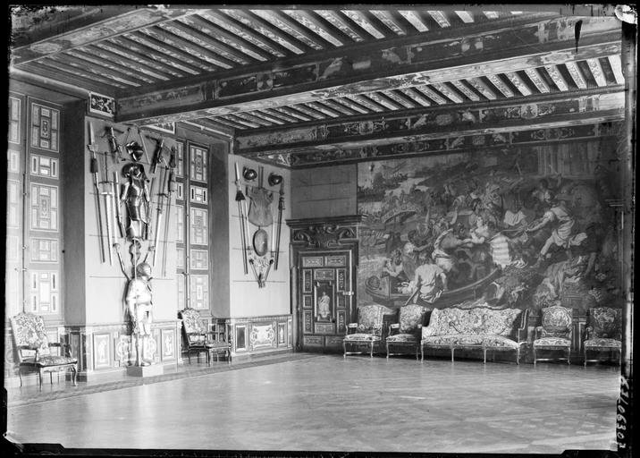POP | Plateforme ouverte du patrimoineIntérieur : salle des gardes, armures et tapisserie murale